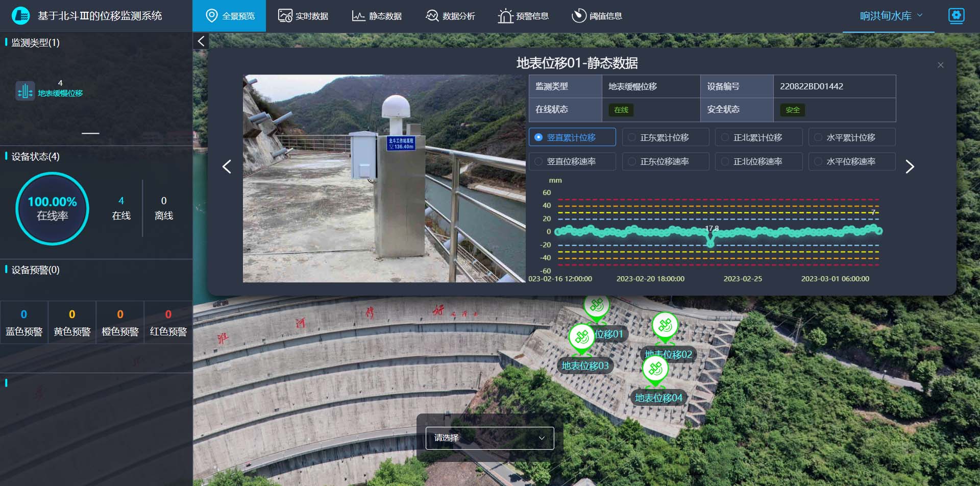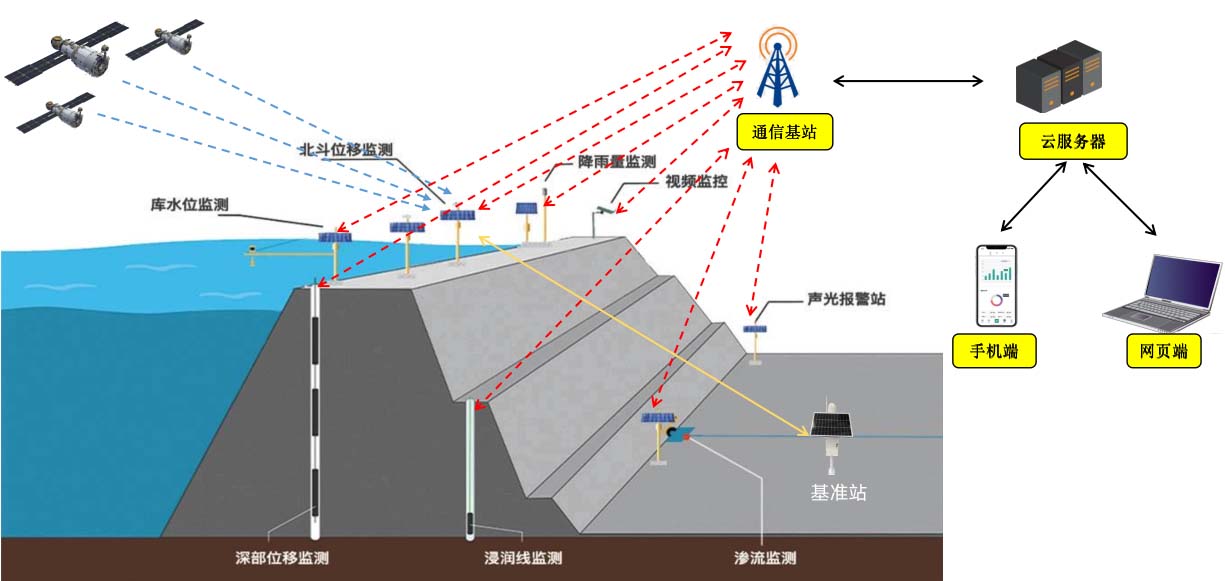 方案简介 北斗高精度静态差分定位技术,通过自建基准站或者地基增强系统获得已知精密定位坐标,计算出基准站到星的距离改正数,并由基准站实时将该数据发送出去,北斗监测点在进行观测的同时,也接收到基准站发出的数据,然后进行动态差分数据解算,得到监测点厘米级的定位结果,在监测时间段内对该定位结果的数据进行静态解算后,得到毫米级的定位精度,平台网站对监测结果进行可视化,另外会对监测对象进行状态评估,当发出预警信息后,系统会第一时间通知用户单位。